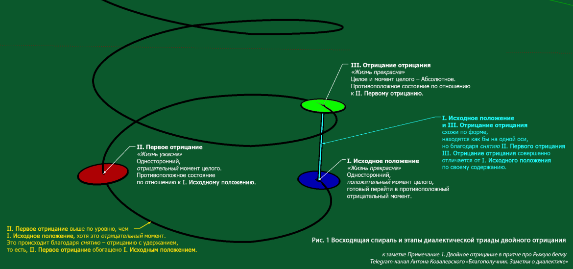 (1) Эту триаду называют как «утверждение – отрицание – отрицание отрицания», так и «исходное положение – отрицание – отрицание отрицания».